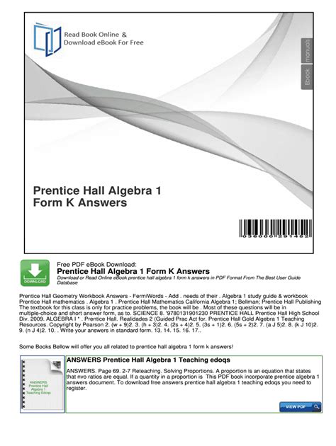 Read PRENTICE HALL ANSWER KEYS Epub BookBoon